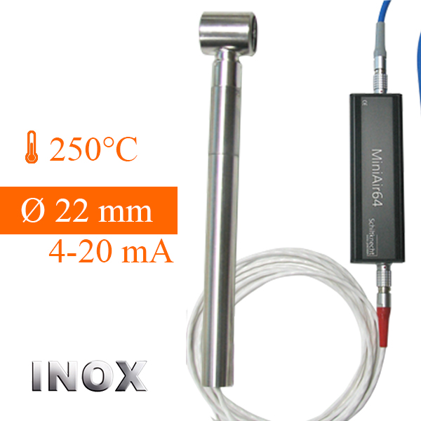 - Sonde de vitesse à hélice INOX compatible avec un usage à 250°C.
